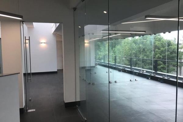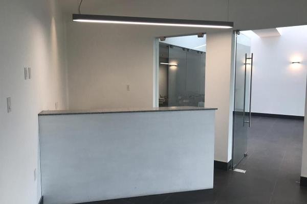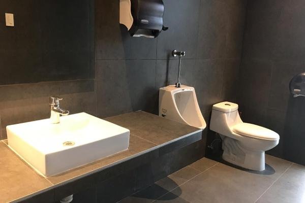La oficina cuenta con doble acceso a las instalaciones. En la planta baja tiene espacios para recepción, bodega, dos medio baños, transformador eléctrico y un pequeño patio. En la planta alta, también cuenta con recepción y área de espera, doble espacio para cubículos, sanitarios, área de archivo, espacio para comedor de empleados, tres oficinas privadas y otra más para de dirección con sanitario privado y sala de juntas.